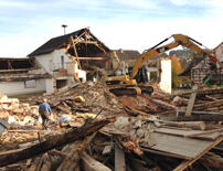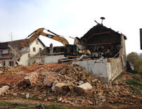 Auf Wunsch übernehmen wir Abbrucharbeiten im Komplettservice – mit fachgerechter Entsorgung auch von Schadstoffmaterialien sowie den anschließenden erdbautechnischen Maßnahmen, wie Ausheben der Baugrube, Austausch des Bodens oder Rekultivierung. ☞ Weitere Informationen zum Thema Erdbau.